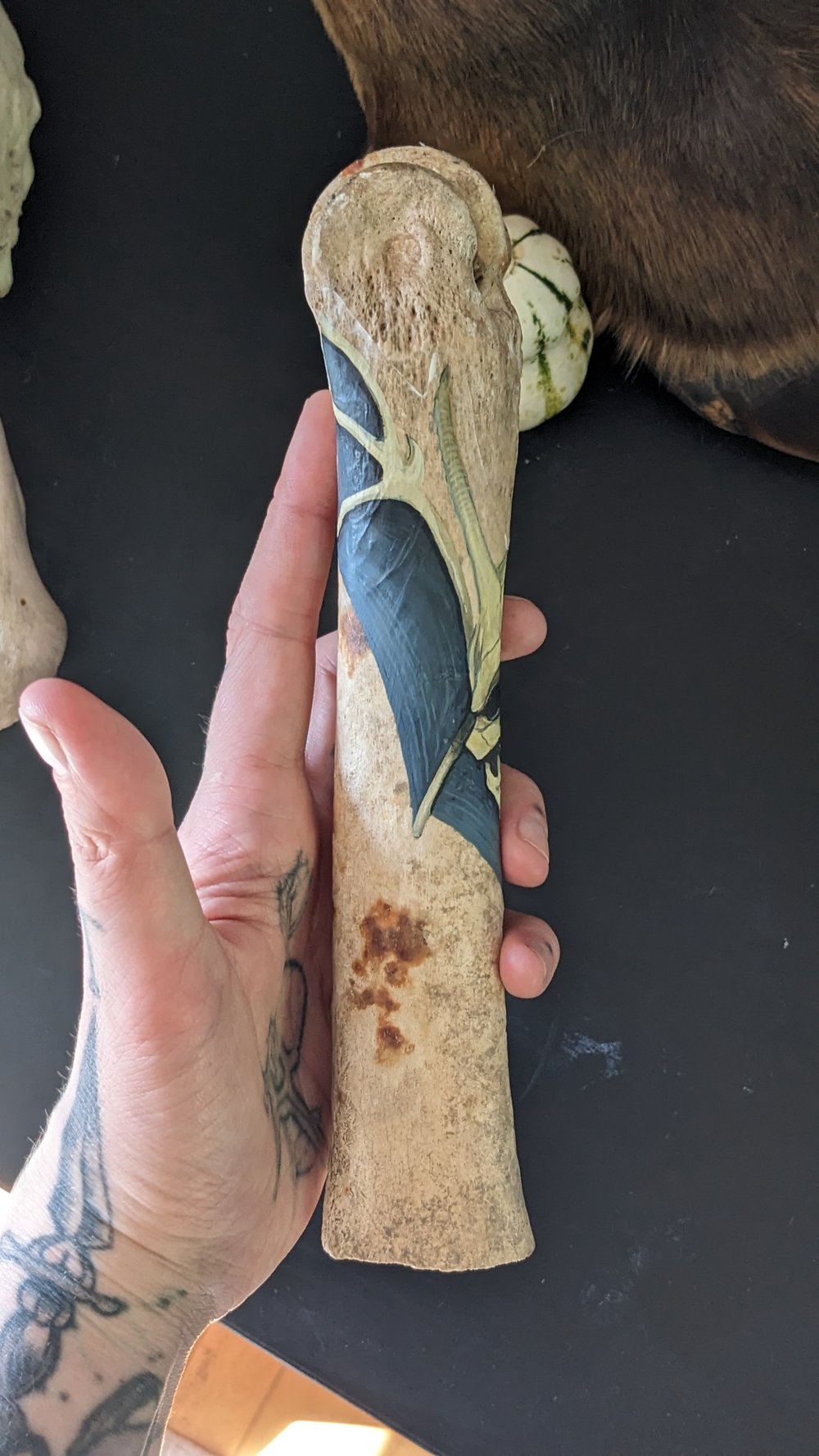 Handmade acrylic paint on found bone.