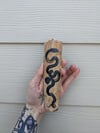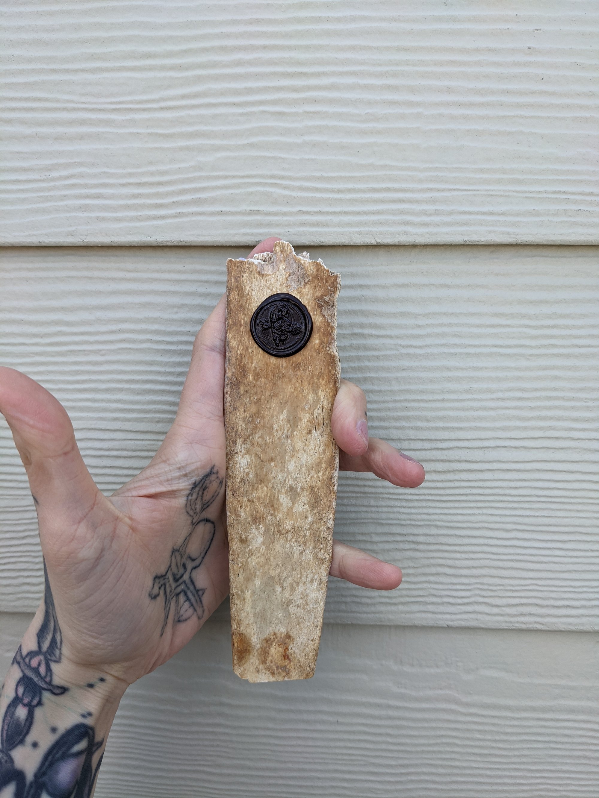 Acrylic on found bone (specific animal unknown). Bone has been scrubbed, cleaned, degreased and whitened.